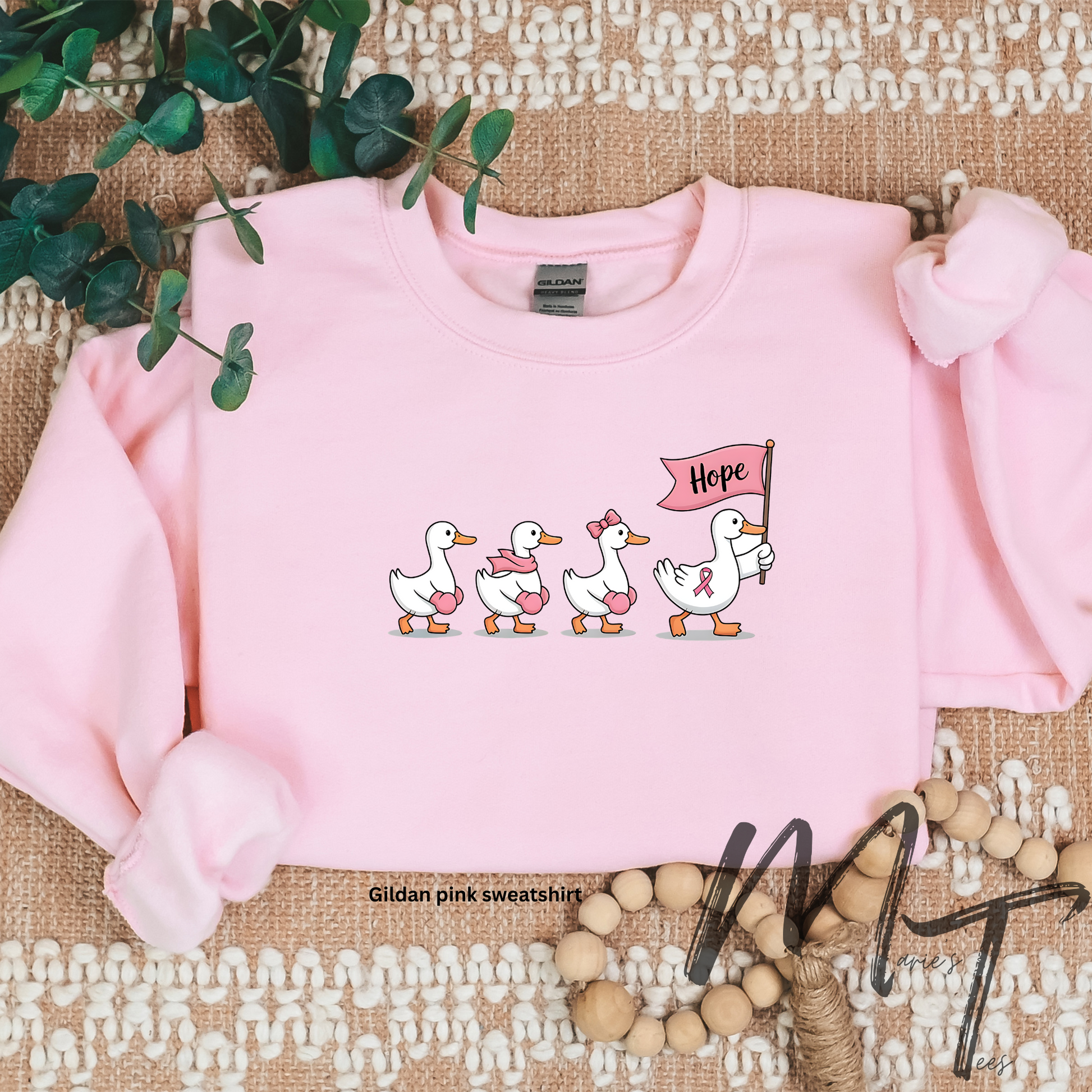 Shown on Gildan pink sweatshirt